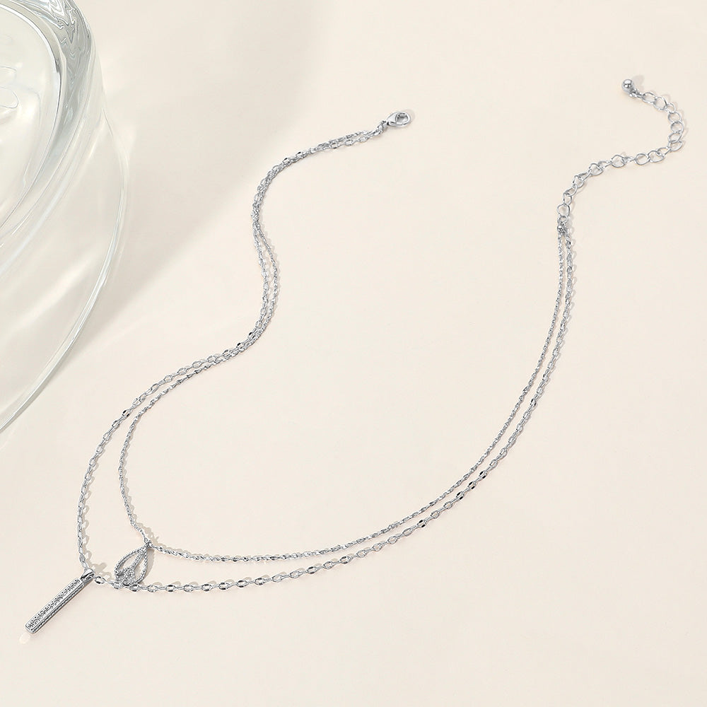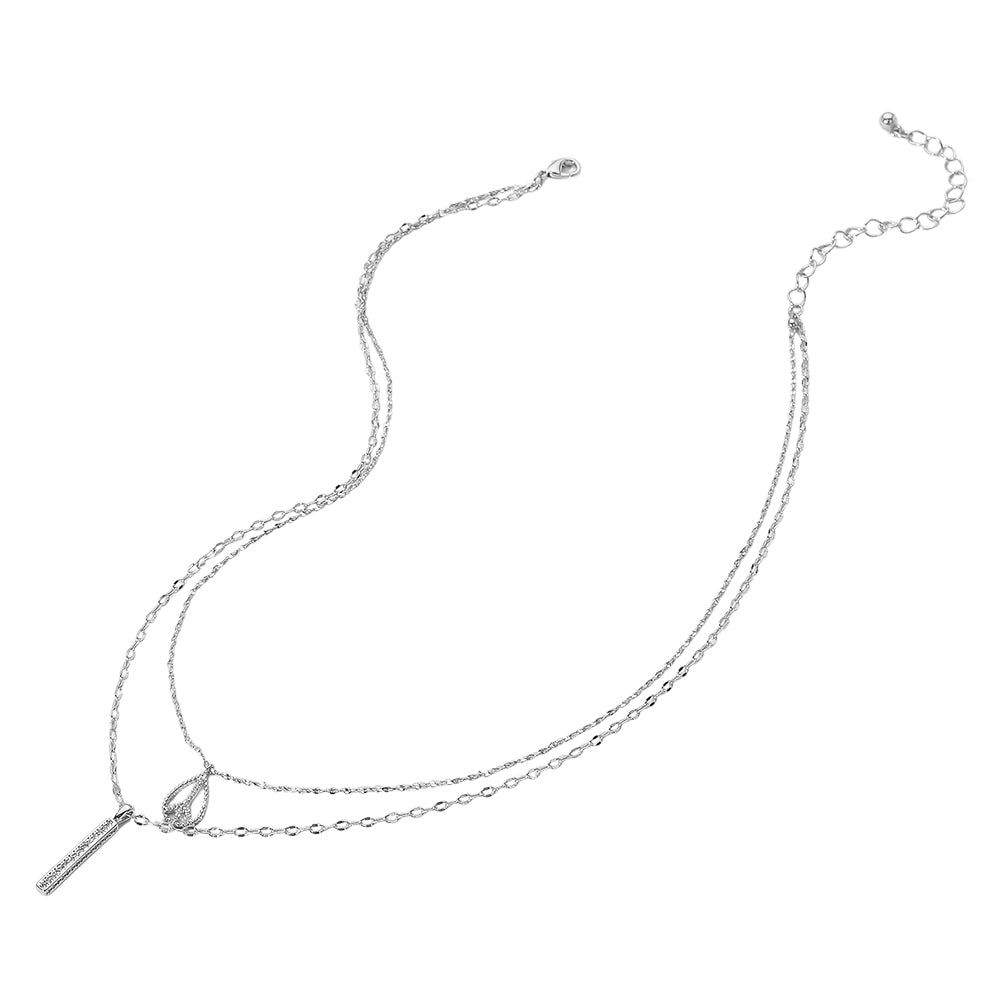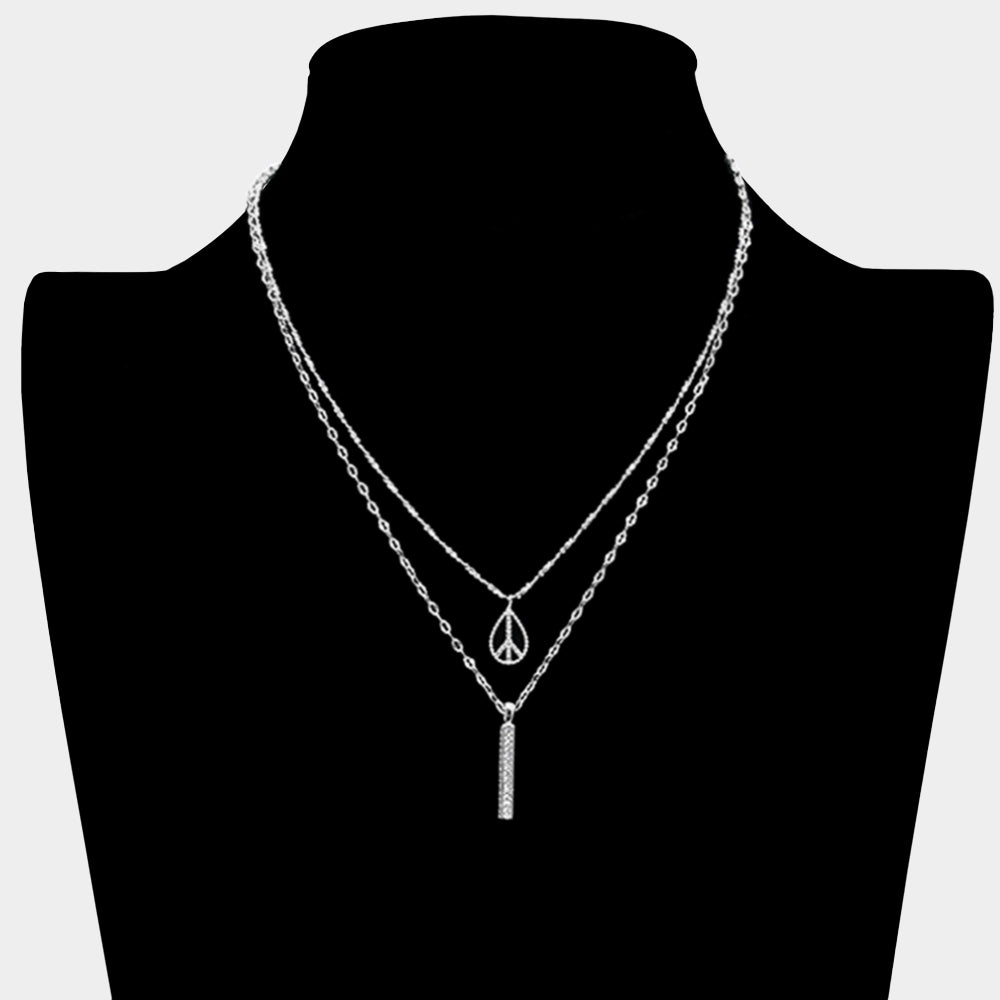 iLLASPARKZ Secret Box_Rhinestone Peace Sign Bar Pendant Double Layered Necklace
