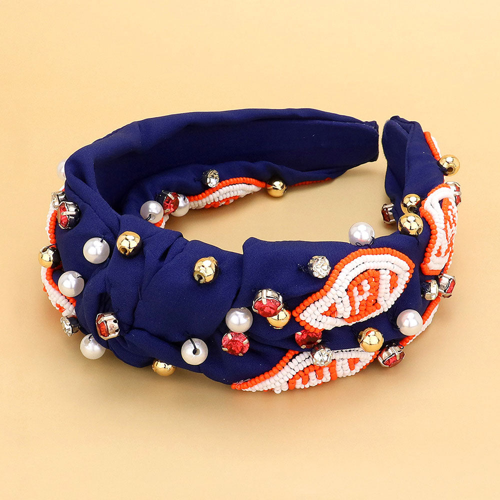 iLLASPARKZ Seed Beaded Football Pearl Stone Cluster Embellished Knot Headband