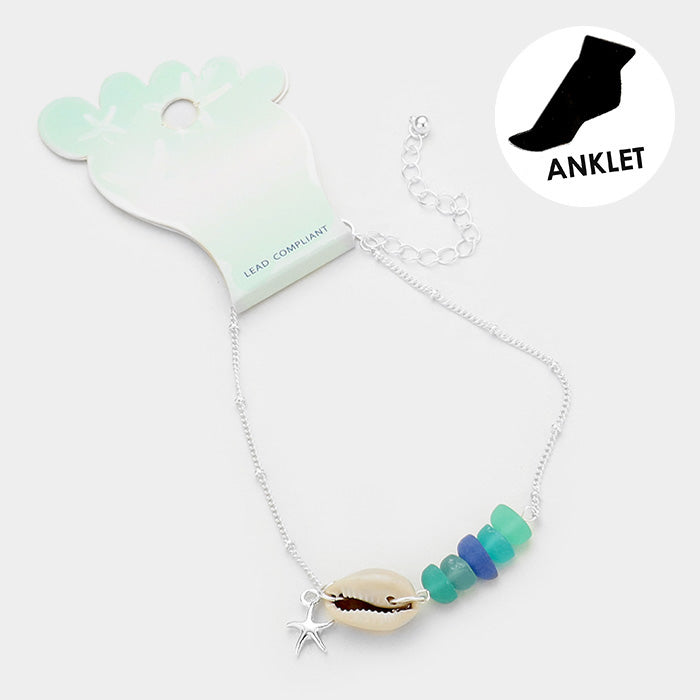iLLASPARKZ Shell Metal Starfish Charm Sea Glass Anklet