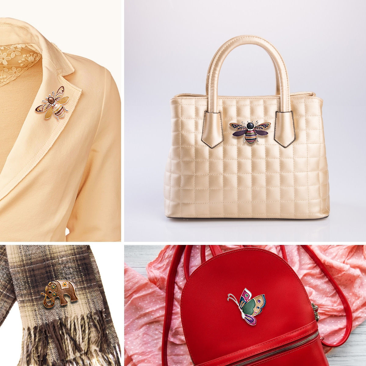 Silver Metal Elephant Magnetic Brooch Pin Featuring White Ears and Rhinestone Detailing. Can also be used as handbag decoration without damaging the fabric. **Handbag not Included