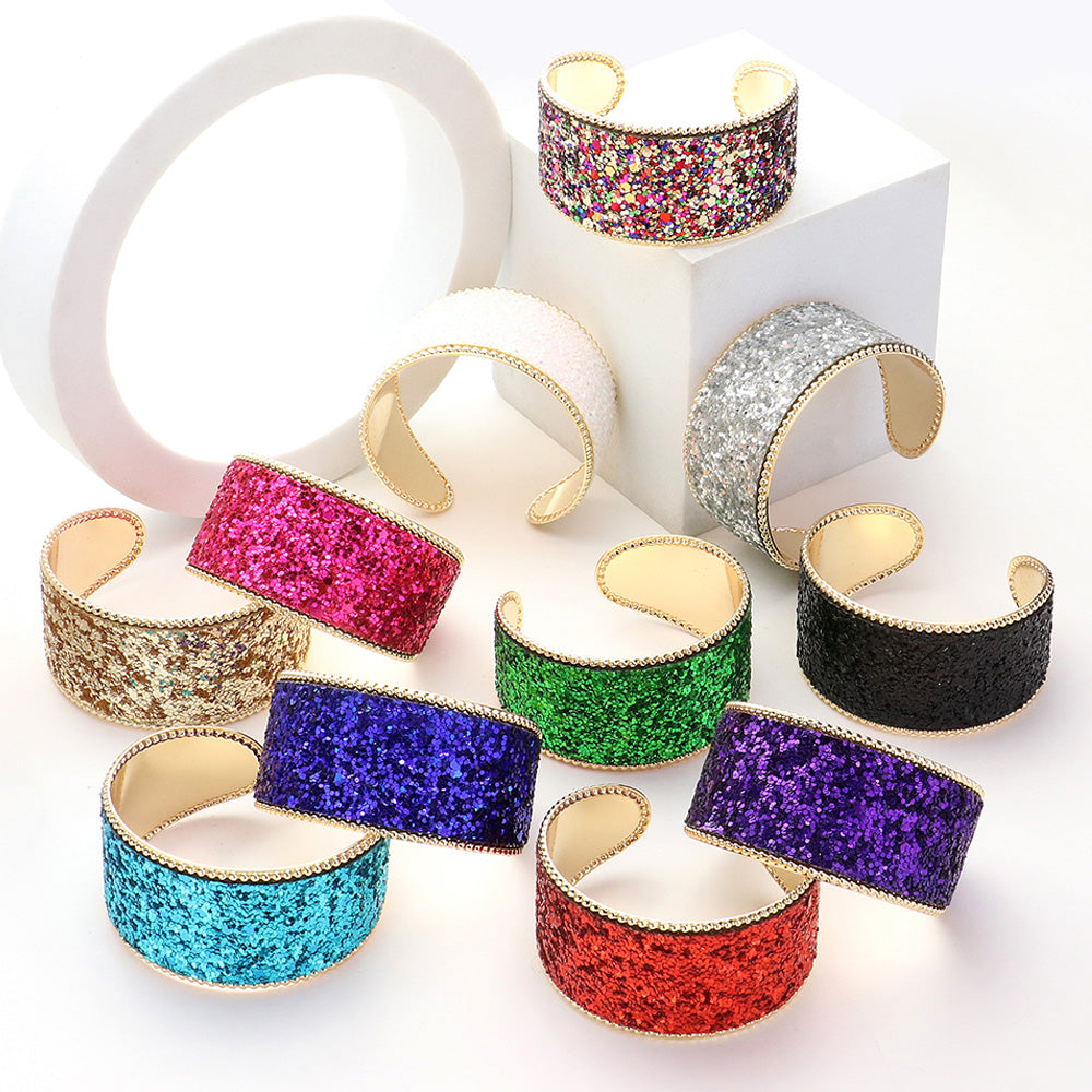 Add bold sparkle to your look with a wide cuff bracelet covered in glitter and framed by elegant beaded edges. Perfect for parties, nights out, or special occasions, this statement piece delivers eye-catching glamour and standout style with ease.