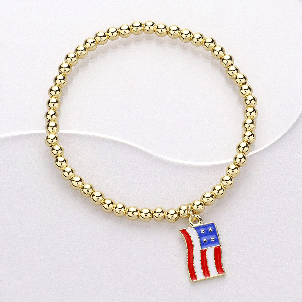 iLLASPARKZ Stainless Steel Enamel American USA Flag Charm Pointed Stretch Bracelet