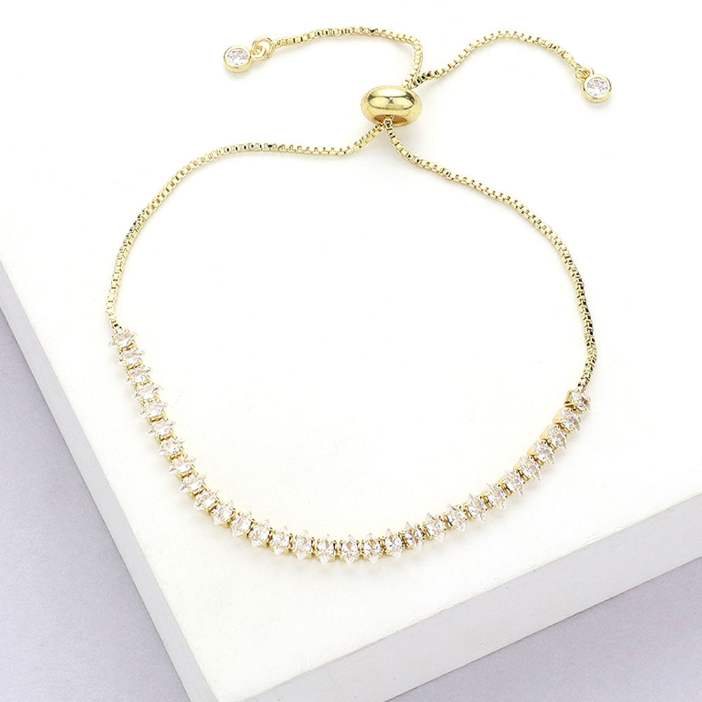 iLLASPARKZ Stainless Steel Marquise CZ Stone Tennis Chain Pull Tie Adjustable Bracelet