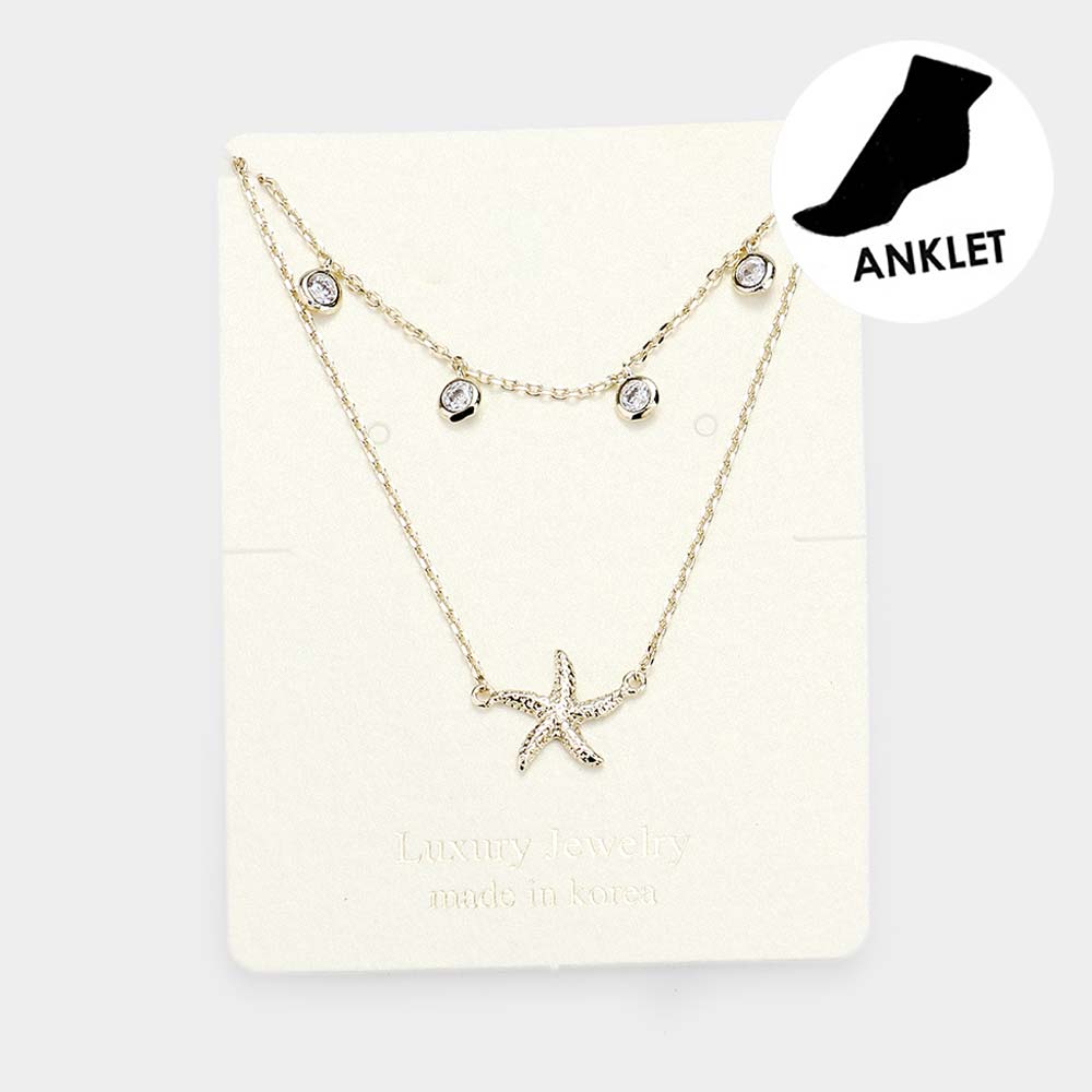 iLLASPARKZ Starfish Rhinestone Layered Anklet