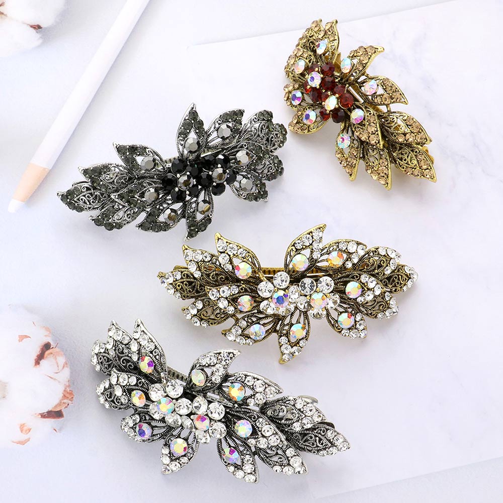 iLLASPARKZ Stone Embellished Flower Leaf Cluster Barrette
