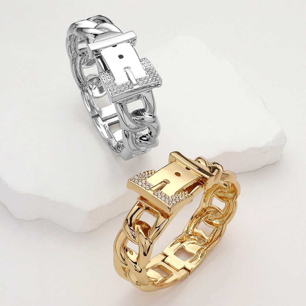 iLLASPARKZ Stone Paved Belt Buckle Accented Cuban Chain Hinged Bangle Bracelet