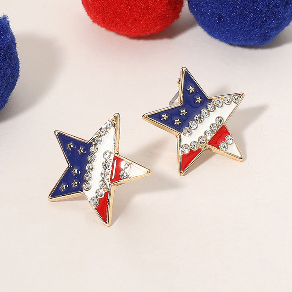 iLLASPARKZ Stone Paved Enamel American USA Flag Star Stud Earrings