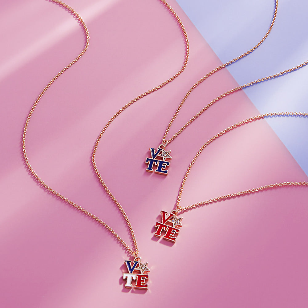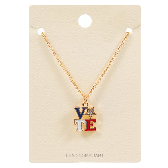 iLLASPARKZ Stone Paved Star Pointed Enamel VOTE Message Pendant Necklace