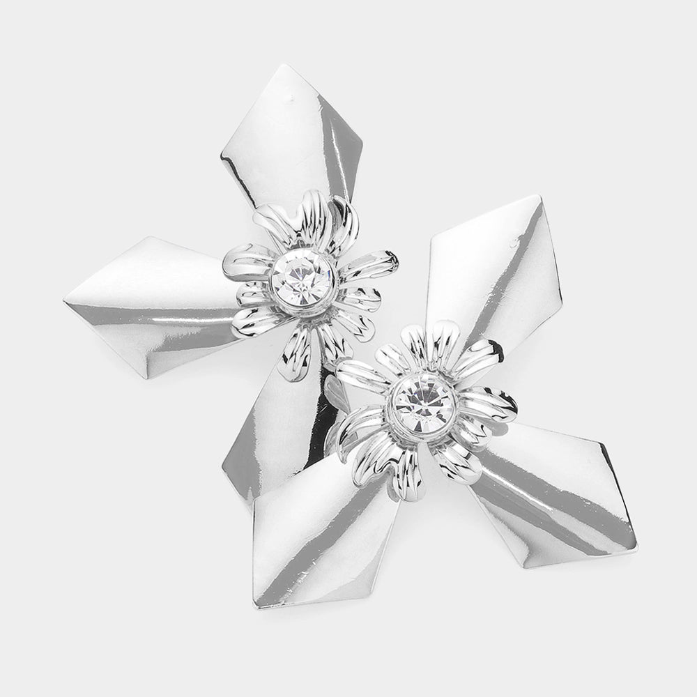 iLLASPARKZ Stone Pointed Metal Flower Geometric Earrings