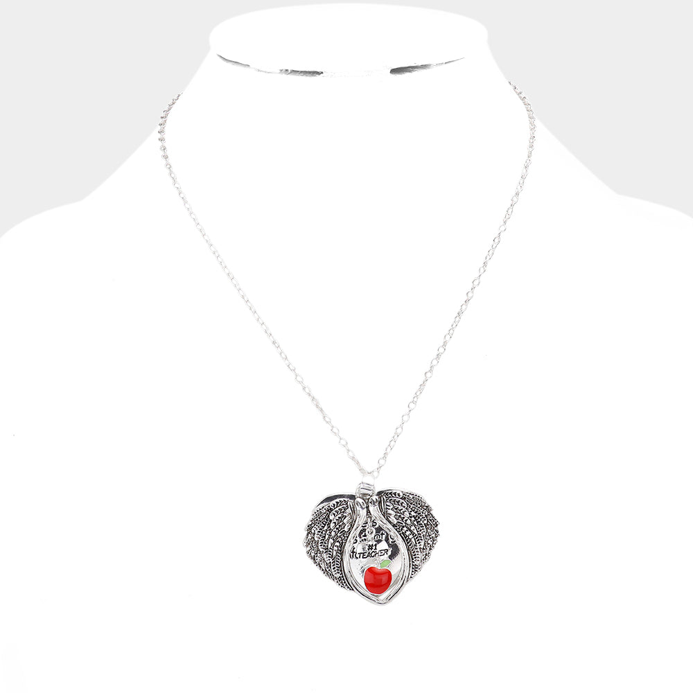 iLLASPARKZ Teacher's Blessing No.1 Teacher Message Enamel Apple Pointed Angel Wings Pendant Necklace