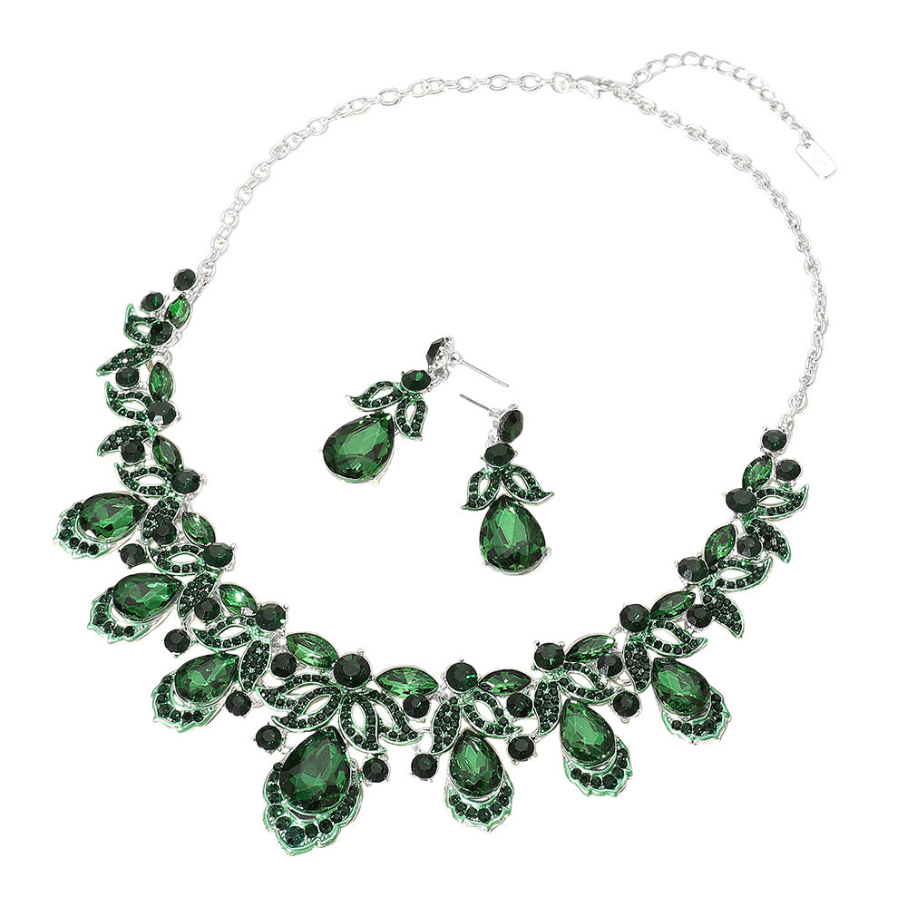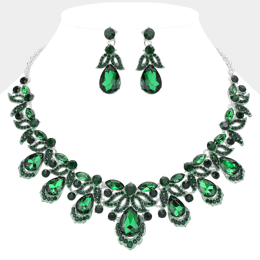 iLLASPARKZ Teardrop Stone Cluster Pointed Marquise Round Stone Embellished Collar Evening Necklace
