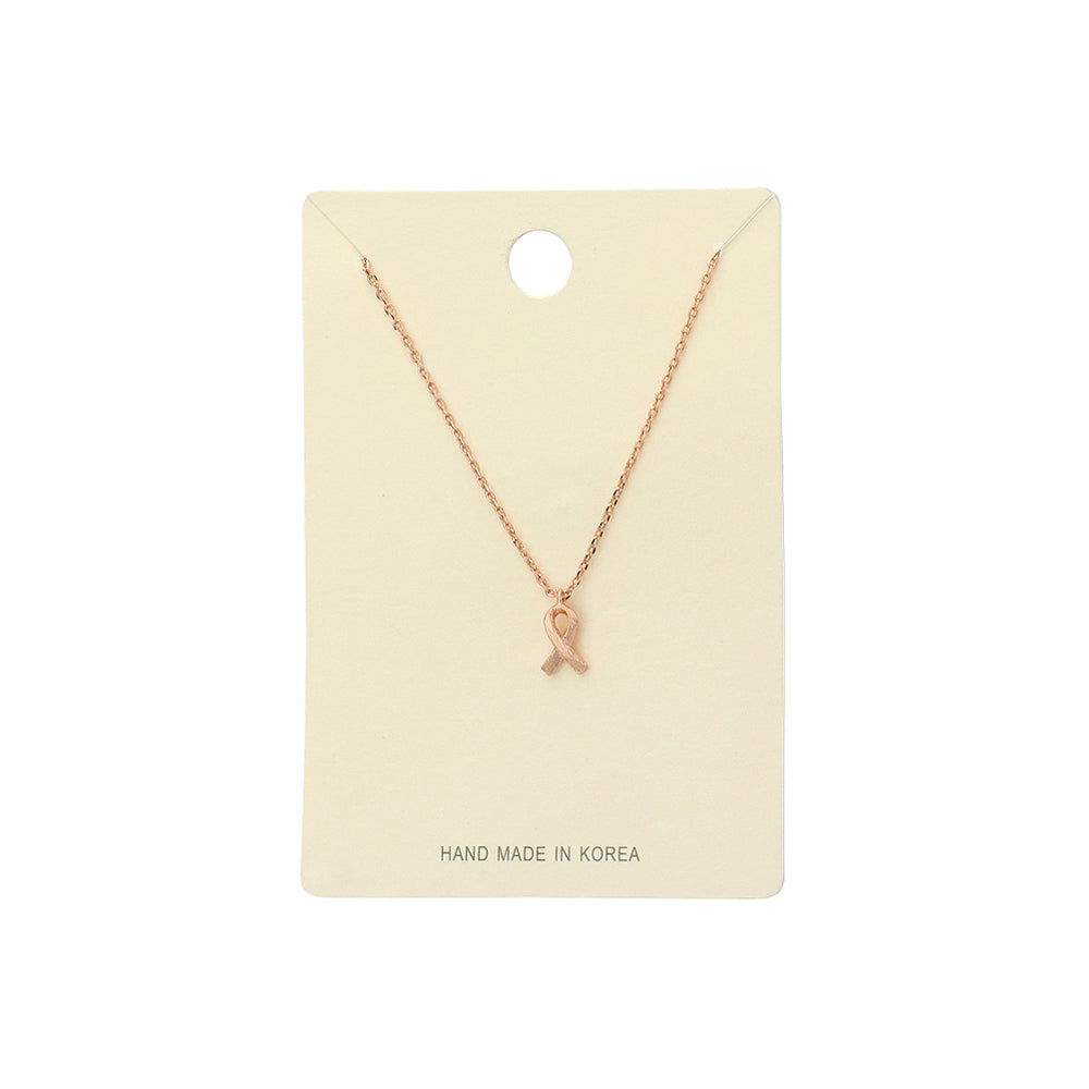 iLLASPARKZ Textured Matte Metal Pink Ribbon Pendant Necklace