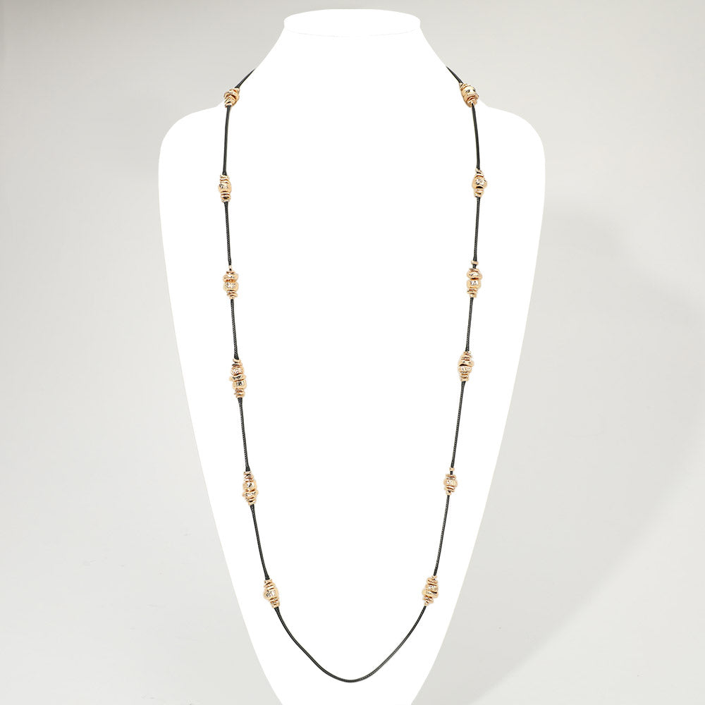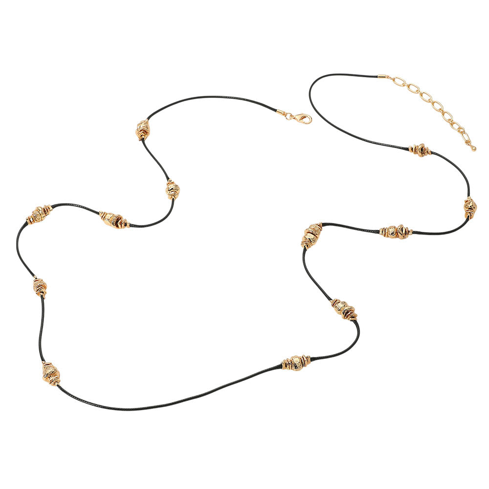 iLLASPARKZ Textured Metal Beaded Cord Chain Long Necklace