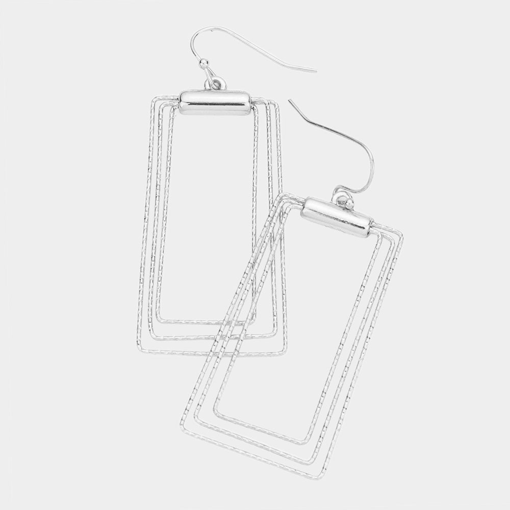 iLLASPARKZ Textured Metal Triple Wire Open Rectangle Dangle Earrings