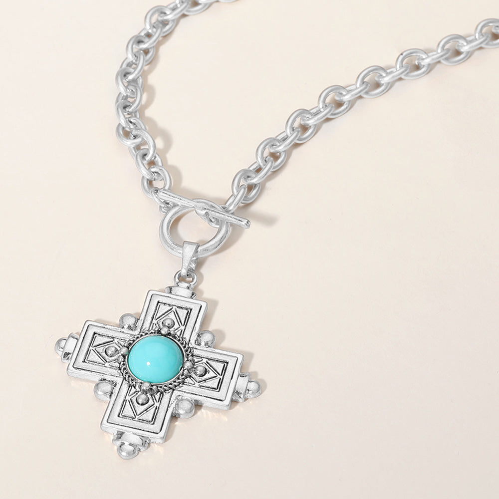 iLLASPARKZ Turquoise Stone Accented Cross Pendant Chunky Chain Necklace