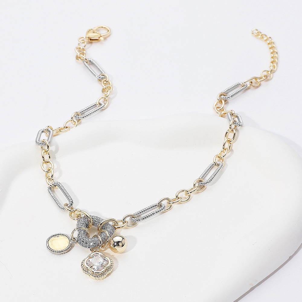 iLLASPARKZ Two Tone 14K Gold Plated CZ Stone Paved Heart Ring Disc Ball Quatrefoil Stone Cluster Charm Pendant Necklace