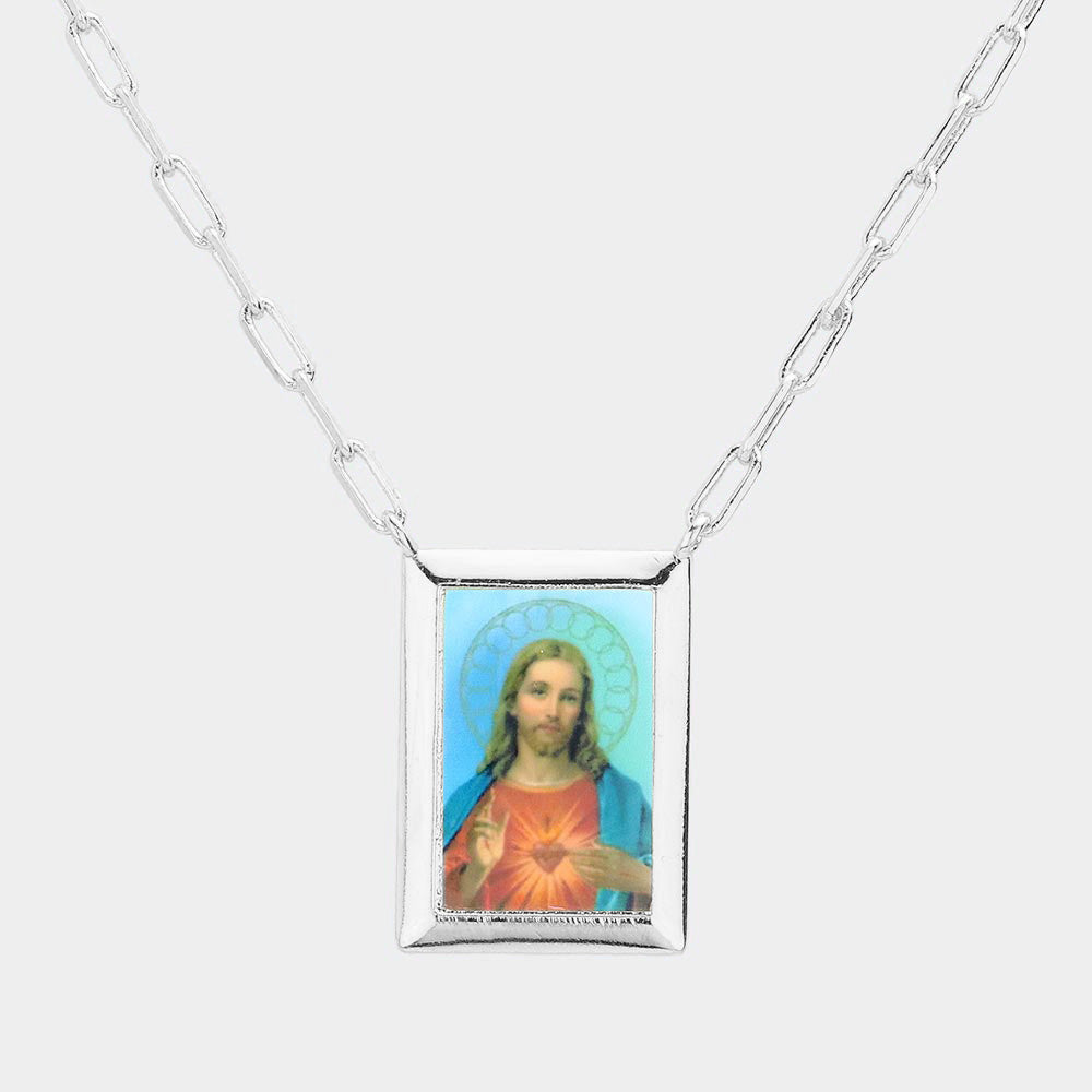 iLLASPARKZ White Gold Dipped Brass Metal Sacred Heart of Jesus Pendant Necklace