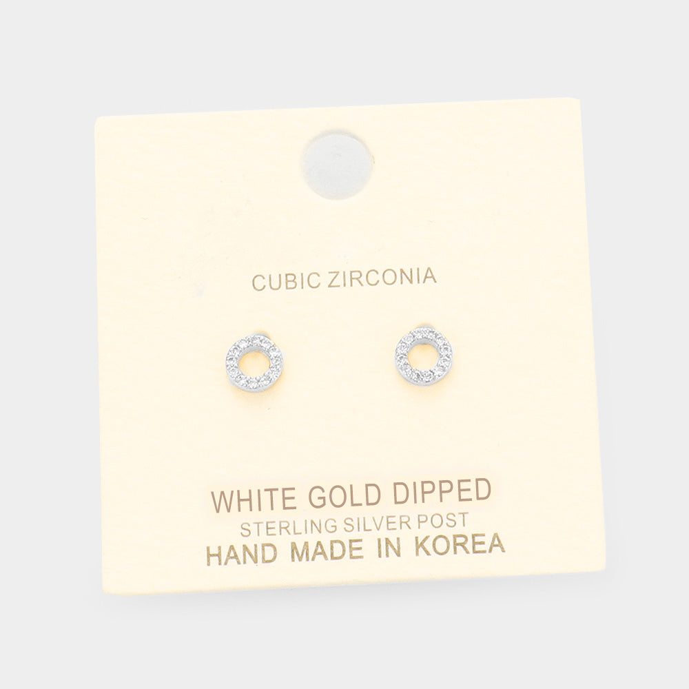 iLLASPARKZ White Gold Dipped CZ Pave Open Circle Stud Earrings