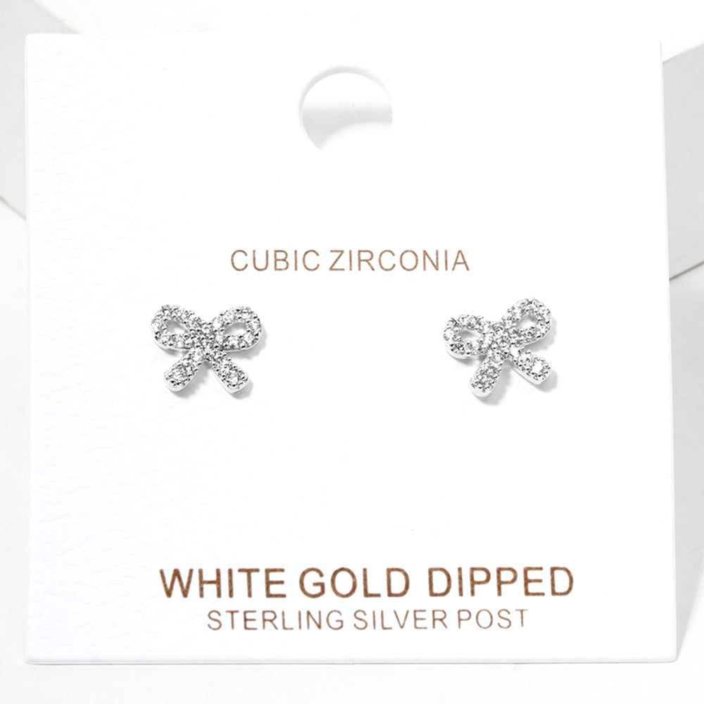 iLLASPARKZ White Gold Dipped CZ Stone Paved Bow Mini Stud Earrings