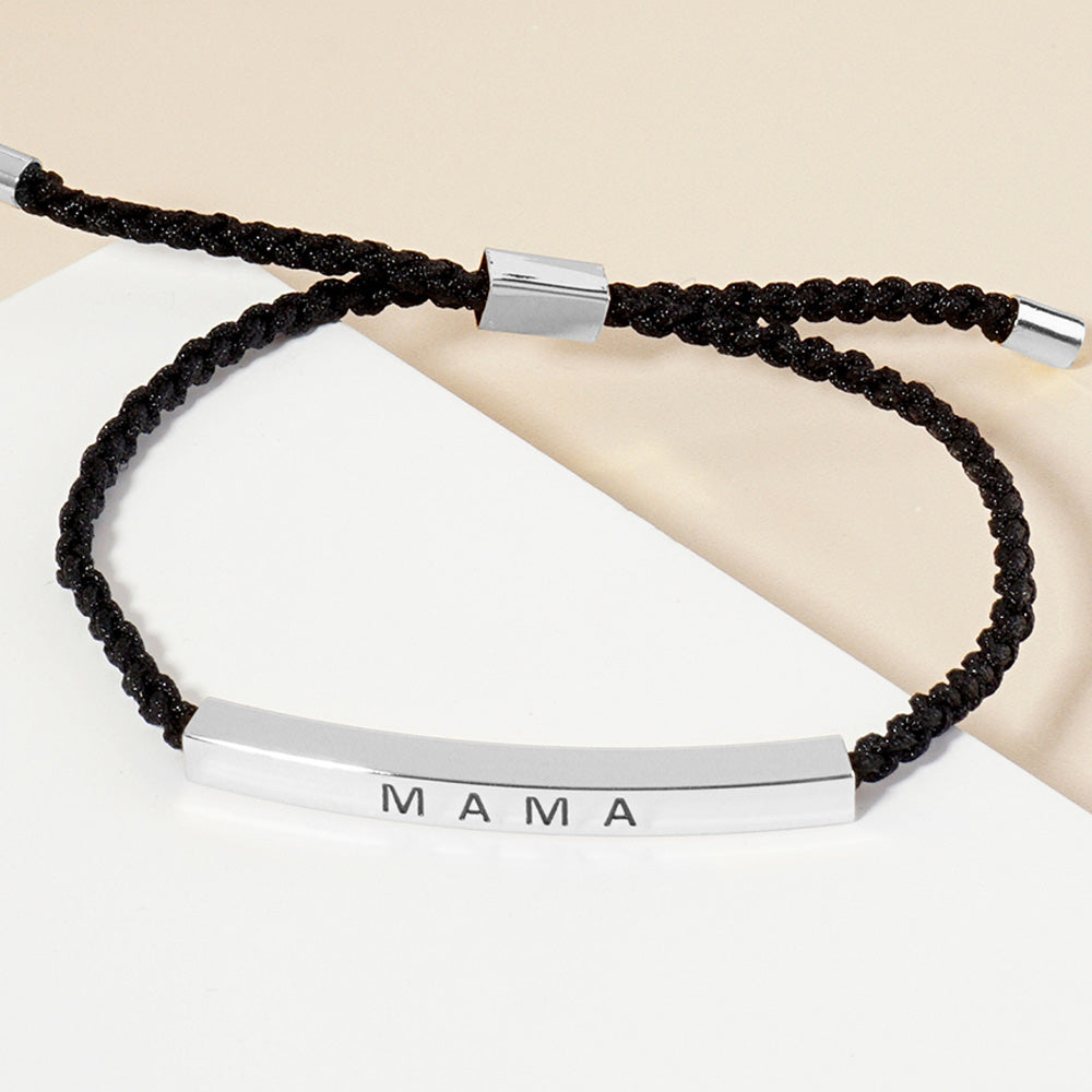 iLLASPARKZ White Gold Dipped MAMA Message Bar Pointed Rope Adjustable Bracelet