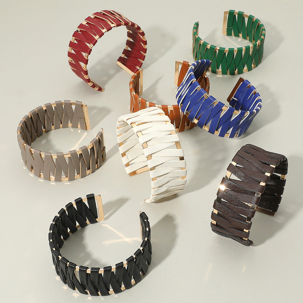 Elevate your accessory style with a woven cuff bracelet featuring interlaced straps and sleek metal accents. Bold yet versatile, this modern piece blends contemporary design with everyday wearability, making it the perfect statement bracelet for any occasion.