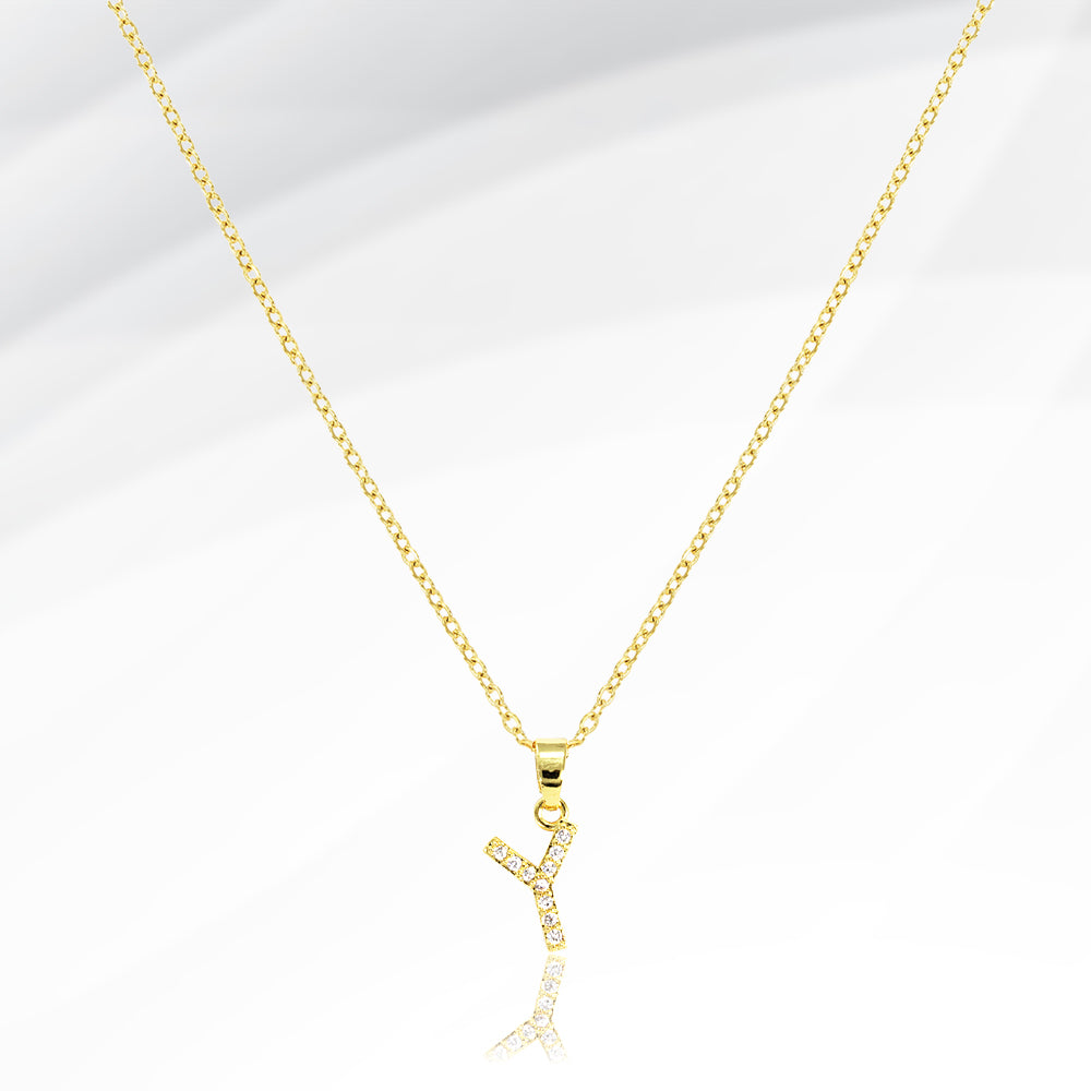 iLLASPARKZ -Y- Stainless Steel CZ Stone Paved Monogram Pendant Necklace